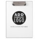 This logo branded clipboard features a simple logo template with a custom text line. Swap the logo template with your business logo and customize the text line with your business name, website or any message of your choice. #customlogo #businesslogo #zazzlemade
