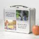 This is a standard metal lunchbox that appears to work just fine. We designed this box ourselves with an uploaded photo and custom text on the front and back. It looks absolutely beautiful except the front of the lunchbox is not centered like it shows in the photo. The print borders don't align with the inset flat part of the box where the preview photo online showed it perfectly centered in there. The back looks nice and centered though.