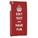Make your own "Keep Calm and Carry On" parody! Click "Customize It" then click "Edit" to change the background to any color!