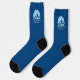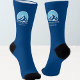 Socks with a blue mountain and sun in front of blue sky with the possibility to add your own text (ski resort or hiking mountain).