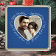 Creating a custom hanging ornament for a 10 year wedding anniversary is easy. Simply upload a favorite image and it will appear in the heart-shape frame. The square surround is blue with a pretty white border around the photo, and has the words: 10th Wedding Anniversary, 10 years of love, 10 years of joy. A lovely way to celebrate ten years of marriage together.