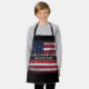 Great color and even though I ordered the kid size, it covers well enough to use during the holidays. I am not a big woman and prefer a shorter apron. I stand 5"6" and the length of the garment goes to mid-thigh. The tie straps fit well at my waist and even though there is no neck strap adjustment, the opening is plenty big enough. I am happy with the size and fit. I am sharing my apron with my 10 year old grandson, too! The color is vibrant and looks good, as shown on the website. The stitching looks strong and reinforced. Photographed is front side and back side of the apron, reinforced straps and coloring. My phone camera may not be the best at showing the details.