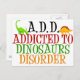 A.D.D. has a new meaning with this funny dinosaur card: Addicted to Dinosaurs! Shows an Apatosaurus (brontosaurus) and a stegosaurus.