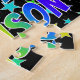 This vibrant, fun, birthday-themed jigsaw puzzle design features the message "HAPPY BIRTHDAY, ADDISON" with the characters having a colorful rainbow spectrum inspired gradient pattern, in addition to a lively star shapes background pattern. An exciting puzzle like this might be a fun way to acknowledge the birthday of somebody named Addison. [~Z0000468]