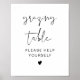 This grazing table sign features a modern minimalist design and an edgy handwritten font. The simple black and white color combination makes it the perfect addition to any event. Use this poster for your wedding reception, bridal shower, retirement party, etc. Edit *most* wording to meet your needs.