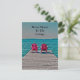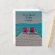 Adirondack beach chairs moving postcard. Cottage lake house. Phrase 'We've Moved'. Trendy, chic, modern, rustic. Pink, teal, turquoise colors. Image copyright Marg Seregelyi Photography.