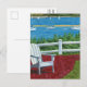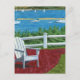 This vivid oil pastel painting features a white Adirondack chair on a red brick padiatio overlooking Cape Cod. Brilliant green, blue, red, and yellow create a stunning summer seascape on the New England Coast.
