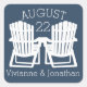 Modern beach theme wedding with adirondack chairs in white. Personalize with couple's names and special date. Change background color as preferred.