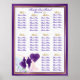 If you don't need as many 'Guest Names' allowed for any table, delete the text 'Guest's Name' and use the enter key for each 'Guest's Name' text you have deleted. This will raise the names you have entered to the correct position, starting at the first position on the tables guest name listing. Poster size of this Shades of Lavender Wedding seating chart may be changed if necessary, aspect ratio only. Matches our Customizable Shades of Lavender Wedding Product Line, including Table Number Cards, Guest Table Assignment Cards, Programs, Envelopes, Invitations, RSVP Cards, Save the Date Cards, Wedding Party and Bride & Groom Favors, Thank You Notes. If you need more than 10 tables, make an additional chart, changing the Table Numbers as necessary, deleting any extra. Customize with your own names, the date of your marriage and your guests names, in the "Personalize It" box on the right of this product page.