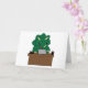 A triceratops dinosaur sits at a desk with a computer, telephone and pencils working hard. The inside greeting card text, which can be customized says, "Administrative Professionals Are Tops!"