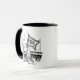 Mug with drawing of two German sailors and the coat of arms of the famous German pocket battleship Admiral Scheer of world war II with the name of the ship written with fraktur letters.