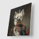 An official oil painting portrait from a West Highland terrier dressed in a Victorian 18th century militairy renaissance uniform like Napoleon. Cute white Westie dog