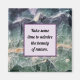 This refrigerator magnet encourages you to take some time and enjoy the beauty of nature. The background of this magnet features a beautiful close-up photo of a purple, green, and yellow striped piece of fluorite mineral. A square in the center allows for a solid background for the text. Both the text and solid pale purple background may be personalized to suit your needs.