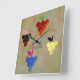 At the forefront of this artwork, four modern bunches of grapes take center stage, each representing a different color. A lush cluster of blue grapes exudes a sense of tranquility and serenity. The red grapes radiate passion and vitality, while the yellow bunch symbolizes the warmth of the sun, bringing joy and light. Finally, the black grapes convey depth and mystery.