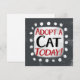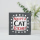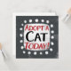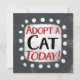 "Adopt A Cat Today" is a cute text design in gray with black and red text. It sits on a white accent shape and cute white polka dots surrounding it.