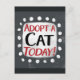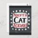 "Adopt A Cat Today" is a cute text design in gray with black and red text. It sits on a white accent shape and cute white polka dots surrounding it.