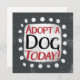 "Adopt A Dog Today" is a cute text design in gray with black and red text. It sits on a white accent shape and cute white polka dots surrounding it.