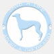 Save a life - adopt a Greyhound! Promote pet adoption with our soft blue Greyhound Stickers. A thick ring around the outside holds the text, while a silhouette of the dog breed is in the inside. Perfect gift for anyone involved in dog rescue!
