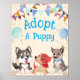 Adopt a puppy birthday party sign blue colors cute puppies for puppy themed birthday party favors display sign
