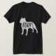 All dogs deserve a good home. They just need to find the right person. This custom designed shirt with the word adopt drawn inside the silhouette of a pit bull spreads that message.