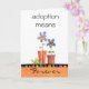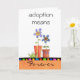 this cute adoption congratulations card is of a little frog by two flowers. Adoption is forever.