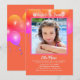 Adoption party invitation for a young girl, teenager or baby. Celebrate the adoption of a daughter with bright pink and orange cards. A festive balloons design is behind the big photo template, with lines of white text to customize. "Welcome to the family" at the top, with her name beneath the picture. Add information and party invitation in the paragraph template. This pretty orange and pink party design also comes as an instant download to share online.