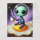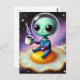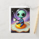 Adorable Alien Floating Egg in Space With Coffee Postcard
