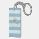 Adorable Anchor on Light Blue and White Stripes Keychain