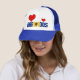 Adorable Barbados Flag Hearts Patriotic Trucker Hat with the inscription "Barbados" displayed on the front of the hat. Inscription is infused with the pattern and the colors from the Barbados national flag. Two red hearts, one big and one small finish the design. Hearts are fully customizable or removable using "Customize it!" feature. Base hat color complements the design very well. This delightful hat is a lovely and unique gift. © CountriesOfTheWorld