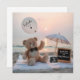 This “We Can Bearly Wait” beachside pregnancy announcement features an adorable bear plushie seated on a sandy shore, surrounded by charming white picnic details and set against a breathtaking beach backdrop. Perfect for coastal lovers and summer reveals, this gender-neutral design blends natural beauty with playful charm ideal for social media posts or keepsake prints.