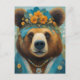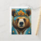 Adorable Bear in a Crown With Flowers Hippie Postcard