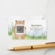 Share your baby registry details in an adorable way with this woodland teddy bears picnic QR code card. Featuring a watercolor style bear holding a customizable QR code sign, standing in a lush green field. Perfect for baby showers or announcements, this card helps guests easily access registry information online.
