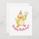 This sweet little chick wearing a party hat and holding a daisy adds charm to any birthday celebration. Perfect for kids and farm themes.