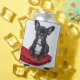 Adorable Black and White Bulldog Puppy Photo Can Cooler