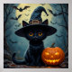 Adorable Black Cat Wearing Witch Hat Poster
