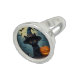 Charming black kitten dressed as a witch with a pumpkin and festive Halloween ambience, surrounded by mystical forest bat silhouettes. Perfect for Halloween-themed designs and seasonal fall inspirations.