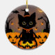 Adorable Black Kitten in Witch Hat Ceramic Ornament