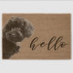 © Adorable Black Toy Poodle Puppy Hello Script Fiber Doormat