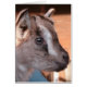 A blank inside all occasion greeting card featuring a photo of a beautiful brown goat kid that was inside enjoying the living room because it was much too cold to be in the barn at such a young age. She very much enjoyed watching TV and getting her bottle.