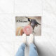 On a watercolor background, this fresco style painting of a cute billy goat blowing a bubblegum bubble says Welcome (You can change this text) Goat Lovers Welcome Mat -