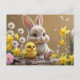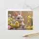 Adorable Bunny and Baby Chick in Spring Garden Postcard