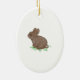 What a cute, realistically painted bunny with a pink nose sitting in a patch of clover on this ornament. Personalize it!