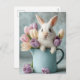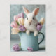 Adorable Bunny Peeking from a Pitcher of Tulips Holiday Postcard