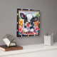 This heartwarming square wall clock features an adorable black and white calf, resting sweetly on a red and white checkered blanket. Surrounded by vibrant pink and orange tropical flowers and baskets of pineapples, this charming design brings a delightful, cheerful farm-to-table aesthetic to any home decor.