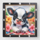 Adorable Calf Picnic Floral Square Wall Clock