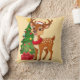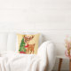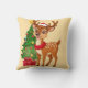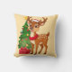 Adorable Cartoon Reindeer in Santa Hat Throw Pillow