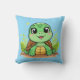 Adorable Cartoon Turtle Smiling Cheerfully Throw Pillow