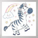 Adorable Cartoon Zebra with Rainbow and Stars | Poster