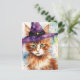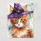 Adorable Cat in a Witch Hat Watercolor Postcard