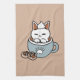 Adorable Cat in Mug Holiday Design - Cat & Cocoa Kitchen Towel